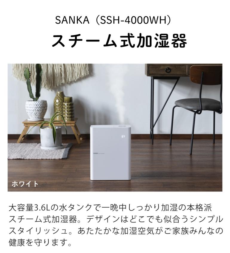 サンカ スチーム式加湿器 SSH-4000WH ホワイト