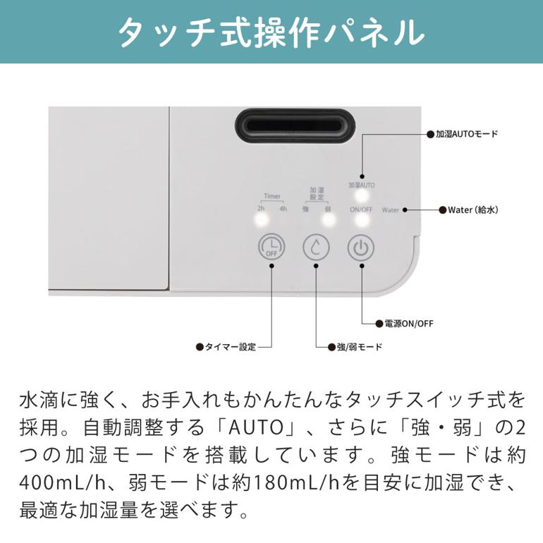 自動調整する「AUTO」、さらに「強・弱」の2つの加湿モードを搭載しています。