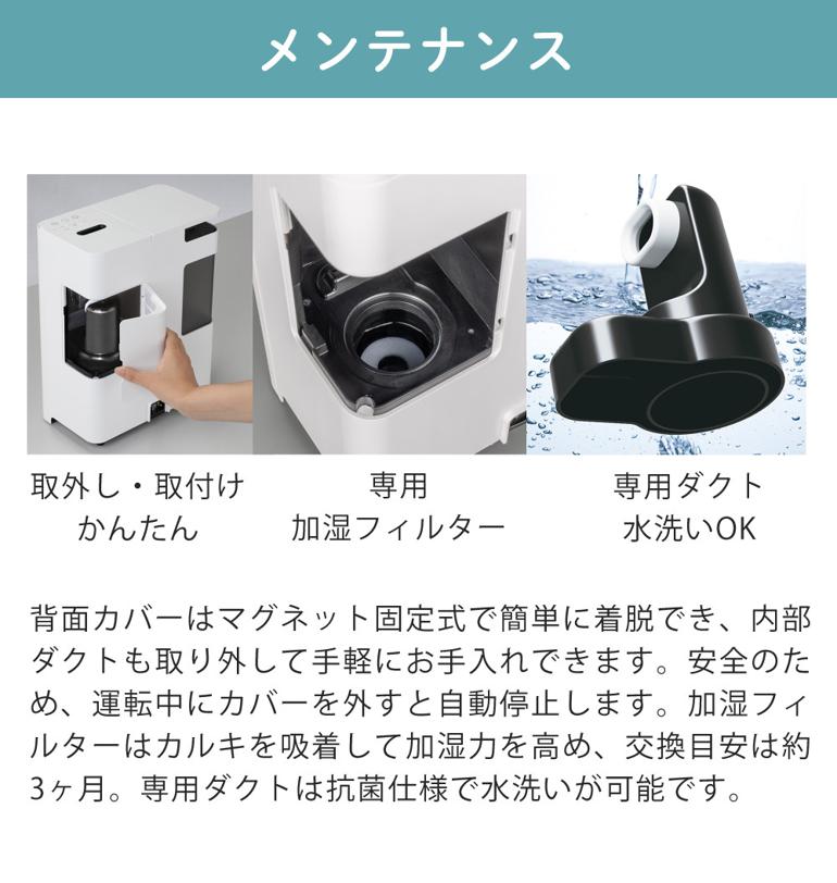 加湿フィルターはカルキを吸着して加湿力を高め、交換目安は約3ヶ月。