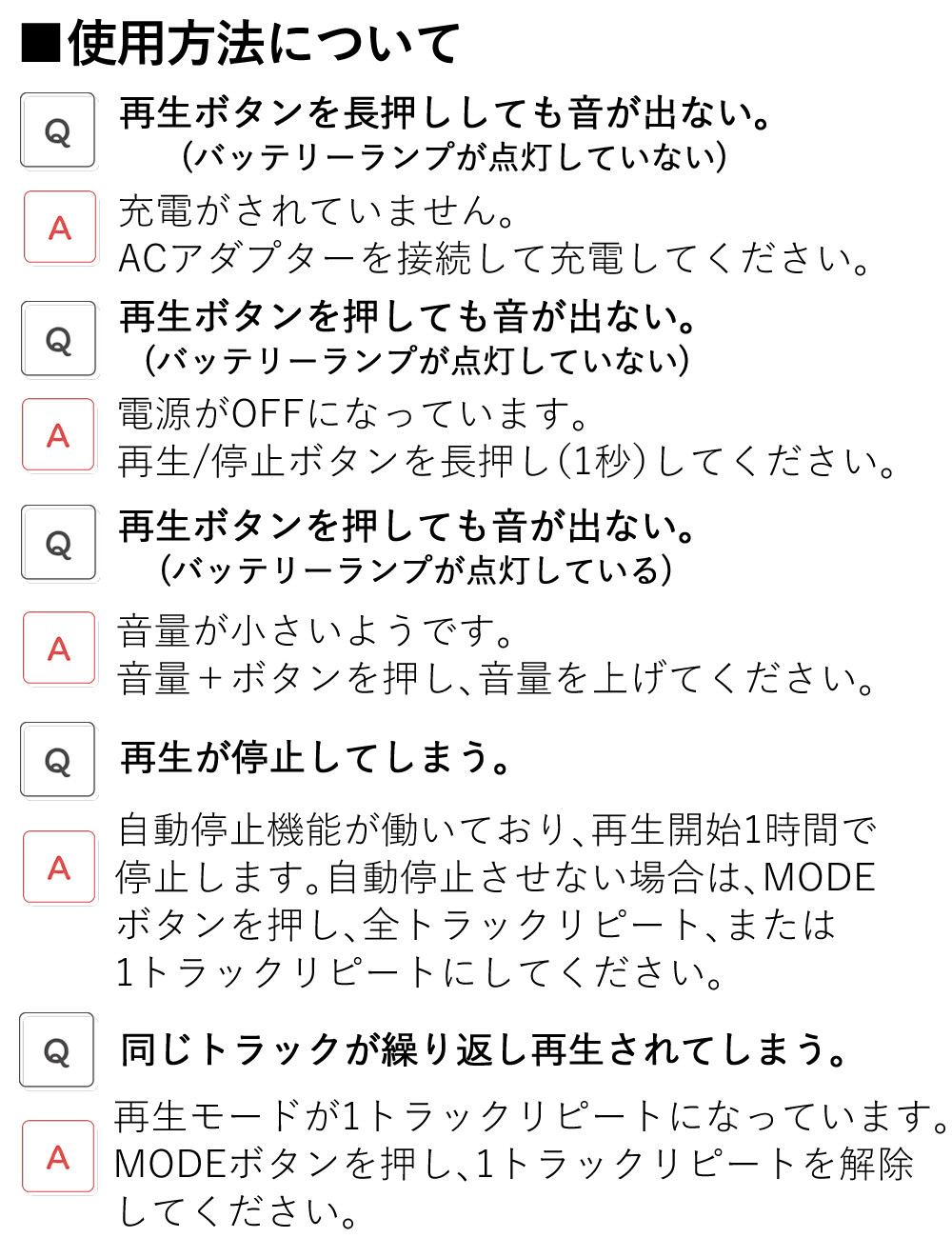 | その他詳細 2 | 使用温度範囲:0~40℃ 電源:専用ACアダプター(KA-350):9V/1.7A 消費電力:15W バッテリー:リチウムイオン充電池 バッテリー容量:2,900mAh/7.2V 充電時間:約4時間30分 再生時間:約48時間 スピーカー:20mm×2 アンプ出力:1.5W×2 |