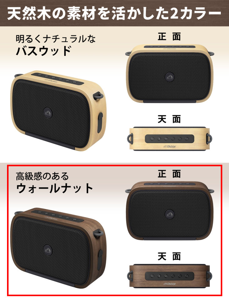 JVC Victor ビクター ポータブルワイヤレススピーカー ウォールナット 防水 防塵 天然木 Bluetooth コンパクト SP-WS04BT