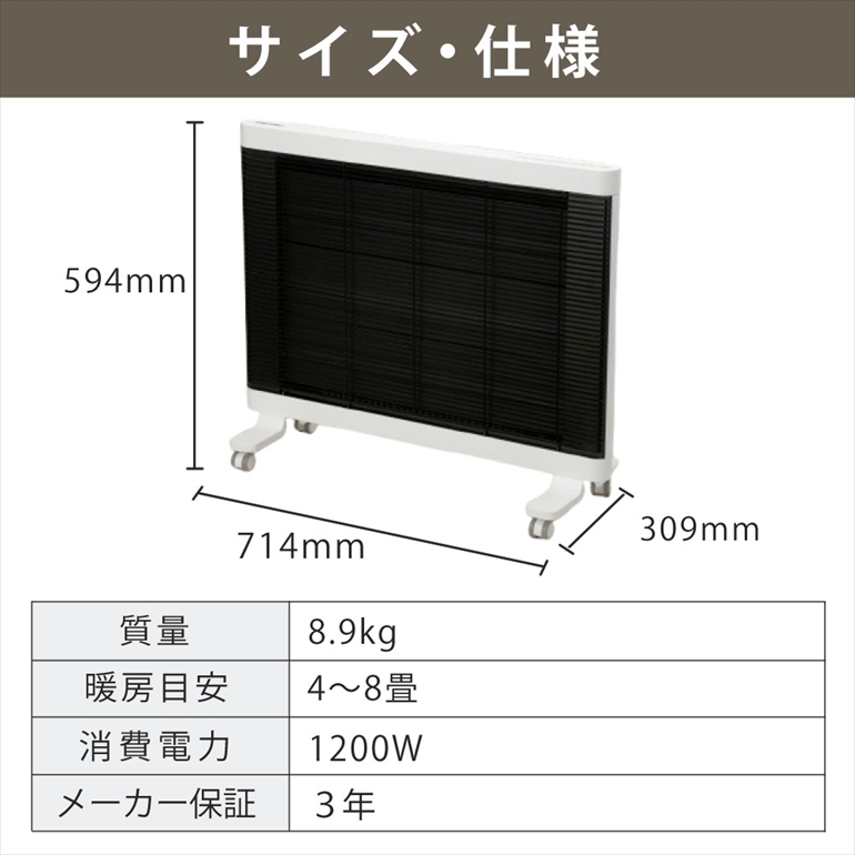 | その他詳細 3 | 便利機能:エコモード※、消音機能、電源コードフック※室内温度が約20℃まであたたまると、自動でパワーセーブします |