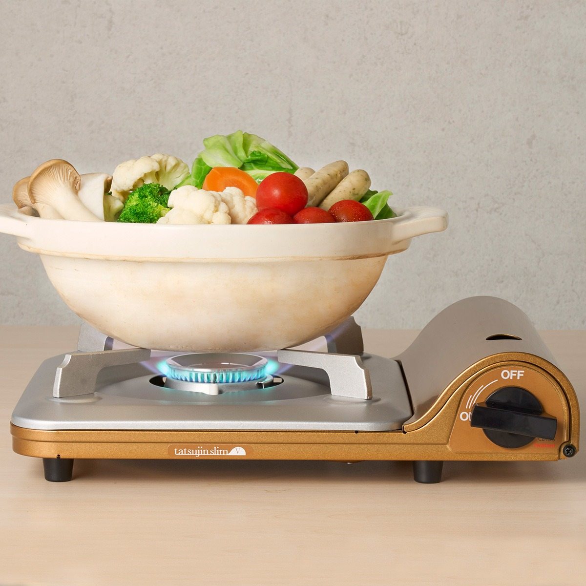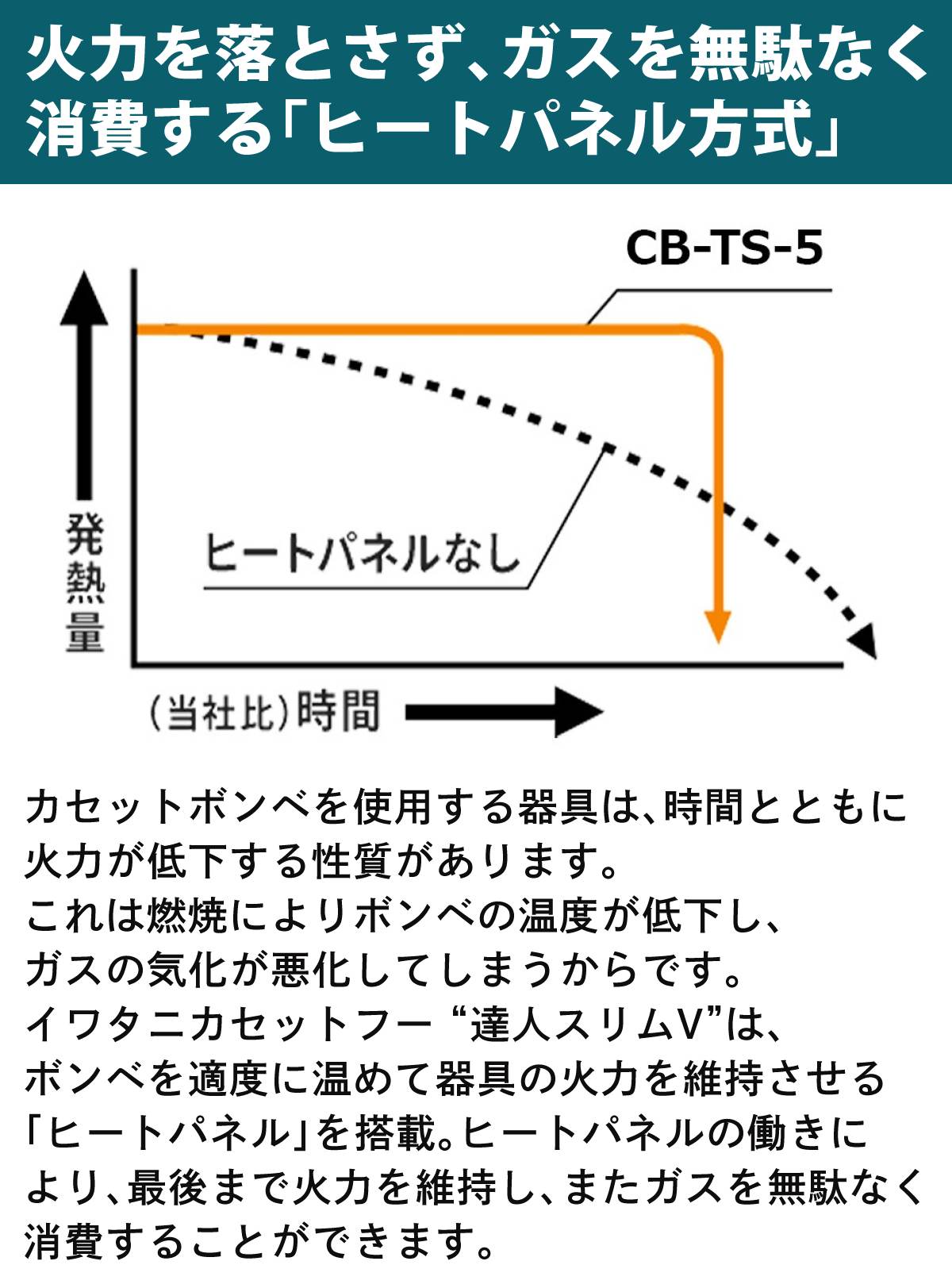 イワタニカセットフー “達人スリムV”は、ボンベを適度に温めて器具の火力を維持させる
