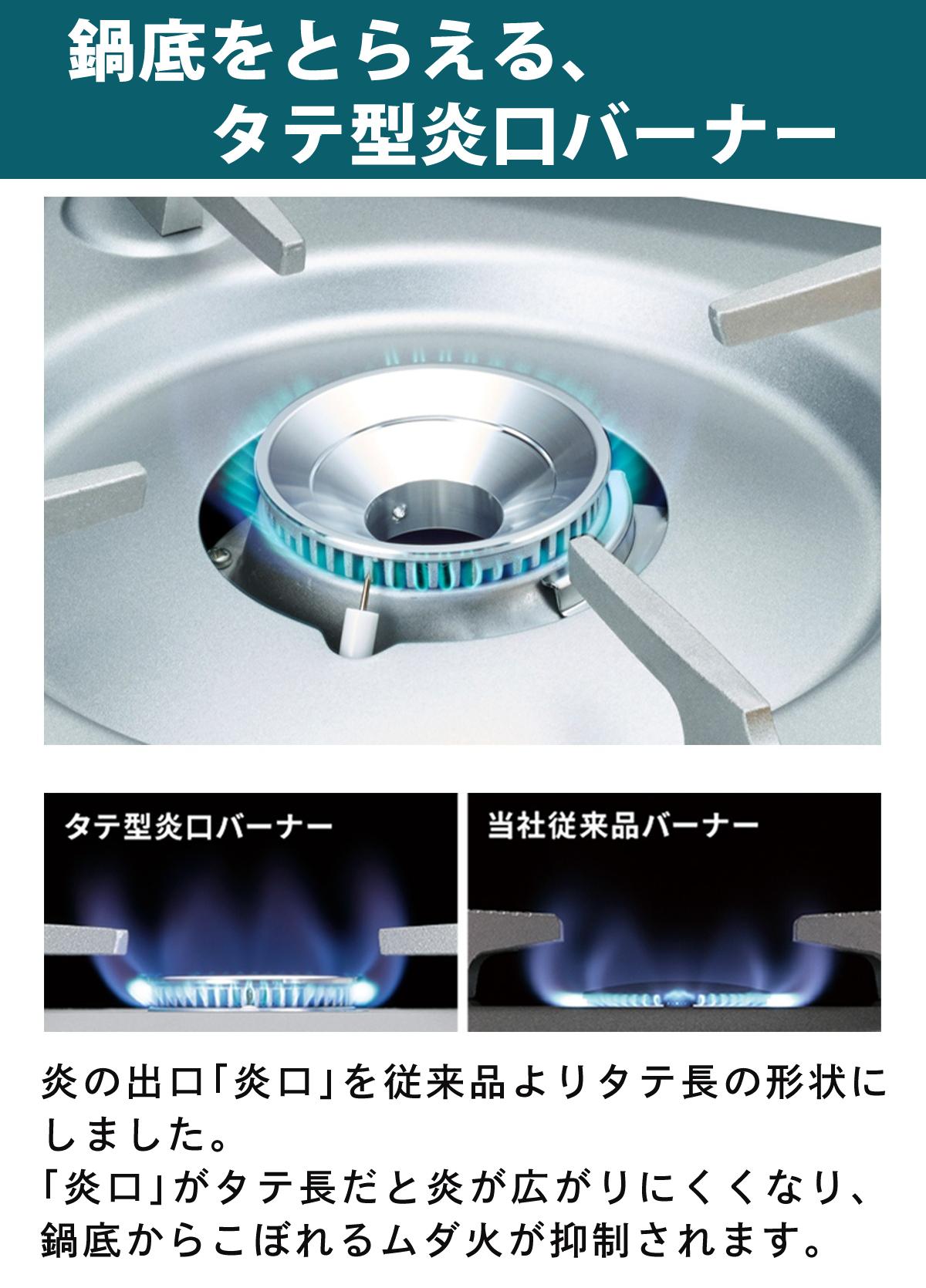 鍋底をとらえる、タテ型炎口バーナー