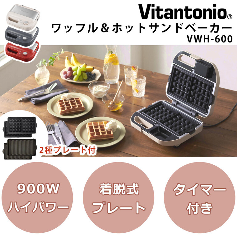 ビタントニオ ワッフル&ホットサンドベーカー VWH-600 レッド