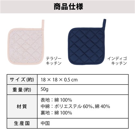 | その他詳細 1 | ●ミトンにもなる2way仕様 鍋敷きとしてだけでなく、サッと手を差し込めば鍋の蓋や熱くなったお皿などを持つときのミトンとしても使用可能です。 |