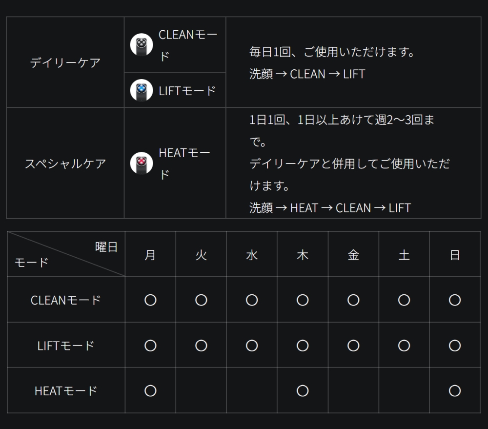 CLEAN/LIFTモードでデイリーケア。HEATモードをスペシャルケアとして併用いただけます。