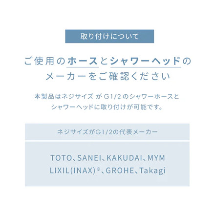 本製品は、ネジサイズ G1/2 のシャワーホース・シャワーヘッドに