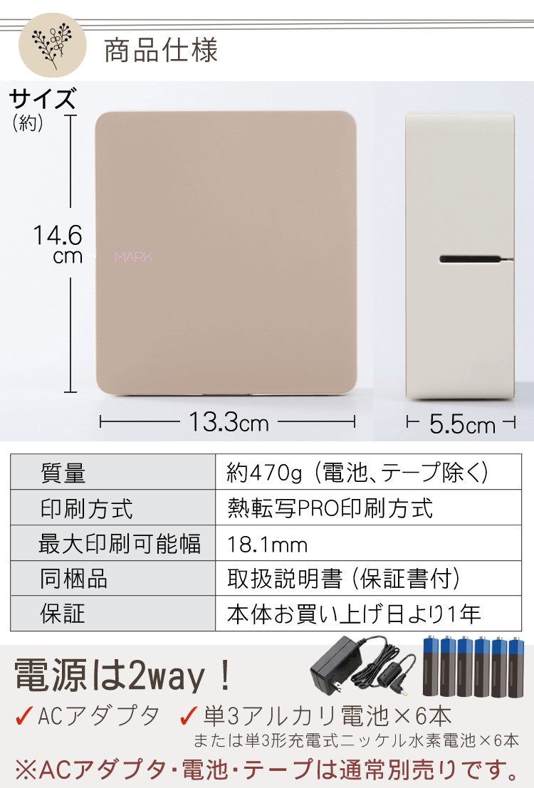 | その他詳細 6 | 同梱品:取扱説明書(保証書付)※各種電源・テープカートリッジは付属しません |