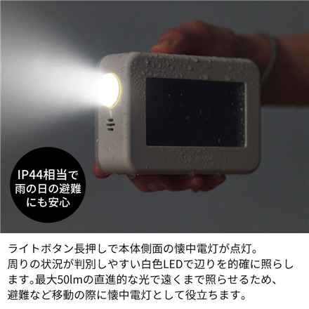 ライトボタン長押しで懐中電灯が点灯、周りの状況が判別しやすい白色LEDで辺りを的確に照らします。