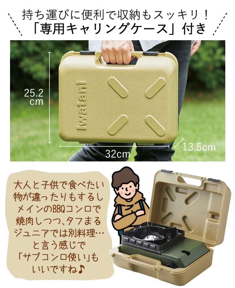 | カラー詳細 | イワタニ タフまるJr. オリーブ CB-ODX-JR ・本体:オリーブ ・キャリングケース:カーキ |