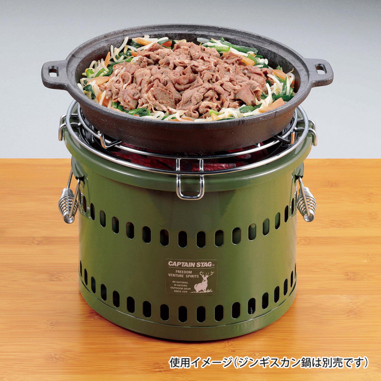 | その他詳細 1 | 【キャプテンスタッグ ポータブル 水冷 七輪 (オリーブ)UG-90】 ● 卓上で使える水冷式の万能七輪 ● ゴトクとアミがセット!煮炊きや焼き物などに使えます。 ● 水冷式なので断熱性が高く、テーブルが熱くなりにくい。 ● フック付きのゴトクでアミや鉄板、ジンギスカン鍋が使いやすい。 ● ゴトクと本体の間に空間があり空気が対流しやすい。 ● ハンドル付、取り外し式目皿で炭の後片付けが簡単です。 ● 屋外専用、災害時にも使用できます。 |