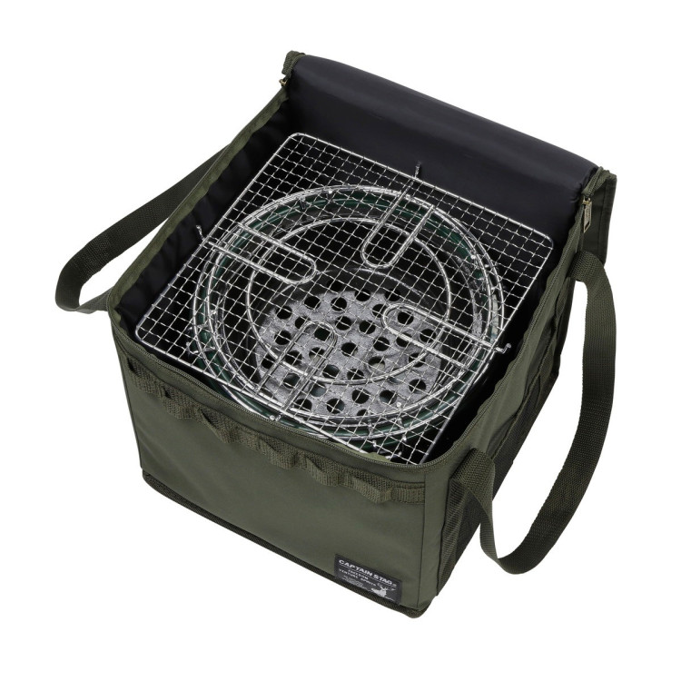 キャプテンスタッグ ポータブル 水冷 七輪 (オリーブ) UG-90 & 収納ケース付き セット