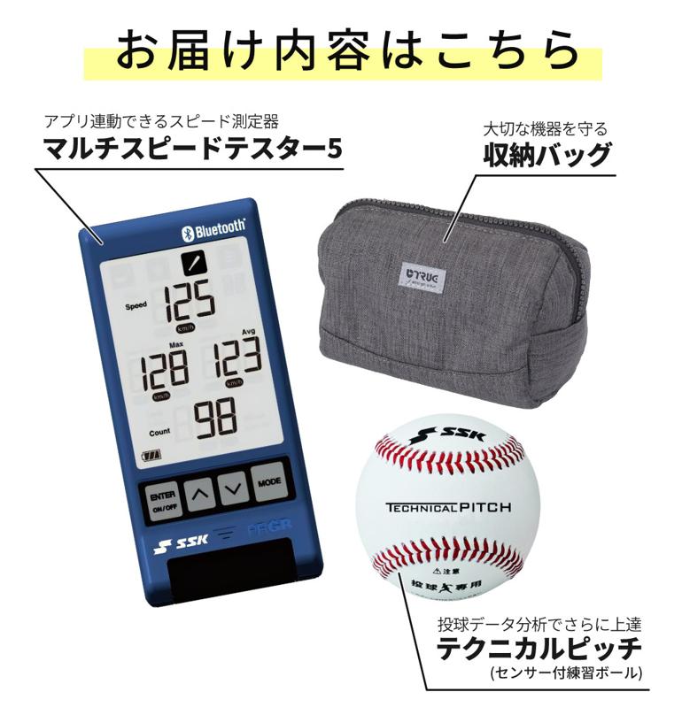 エスエスケイ SSK 速度計測器 マルチスピードテスター5 MST500 Bluetooth対応 & SSK センサー付き軟式ボール テクニカルピッチ TP001 & 収納バッグ セット