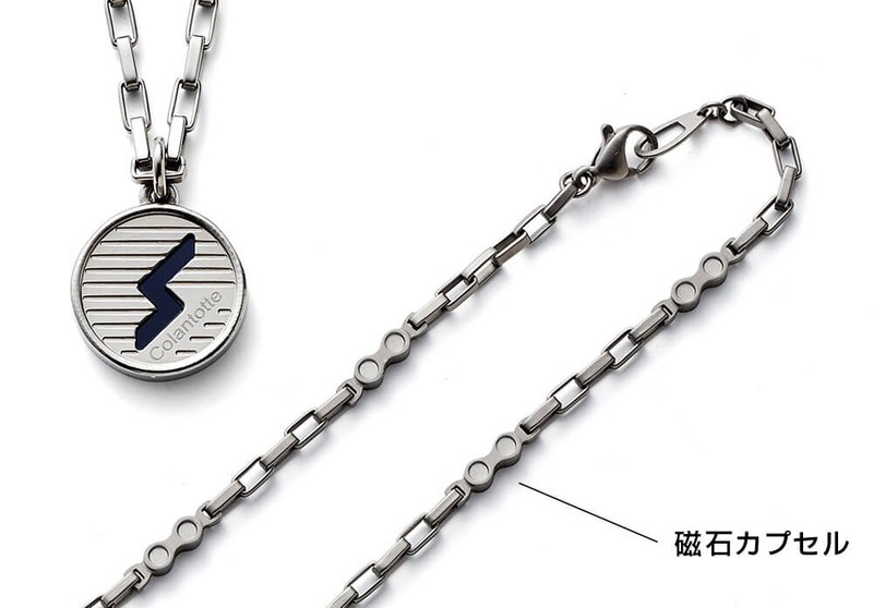 | その他詳細 1 | ●「コラントッテスポーツ」ブランドのPROシリーズからネックレスが登場。 ・コラントッテのロゴモチーフにSPORTSの「S」を施したトップデザイン ・すべての金属パーツに純チタンを使用、金属アレルギーリスクが極めて低く、超軽量、高耐久性、高耐食性を兼ね備えたネックレス ・チェーンはひと粒 約5×2.5mmのスタイリッシュなボックス型 ・磁石カプセルもチェーンとの違和感がない大きさ ・磁石カプセルには磁石をN極S極交互配列で2個配置(4カプセルのため合計磁石数は8個) ・磁石は希土類永久磁石を使用しており磁力は150ミリテスラ ・金属パーツはすべて艶消し加工を施しており、スポーティでありながら落ち着いた印象を与えてくれます。 |