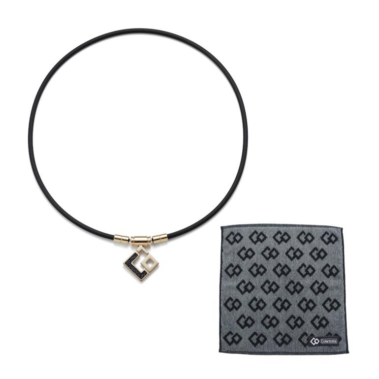 コラントッテ 磁気ネックレス TAOネックレス スリム AURA mini (アウラ ミニ) シャンパンゴールド×ブラックラメ DAAAI101 Mサイズ & ハンドタオル セット