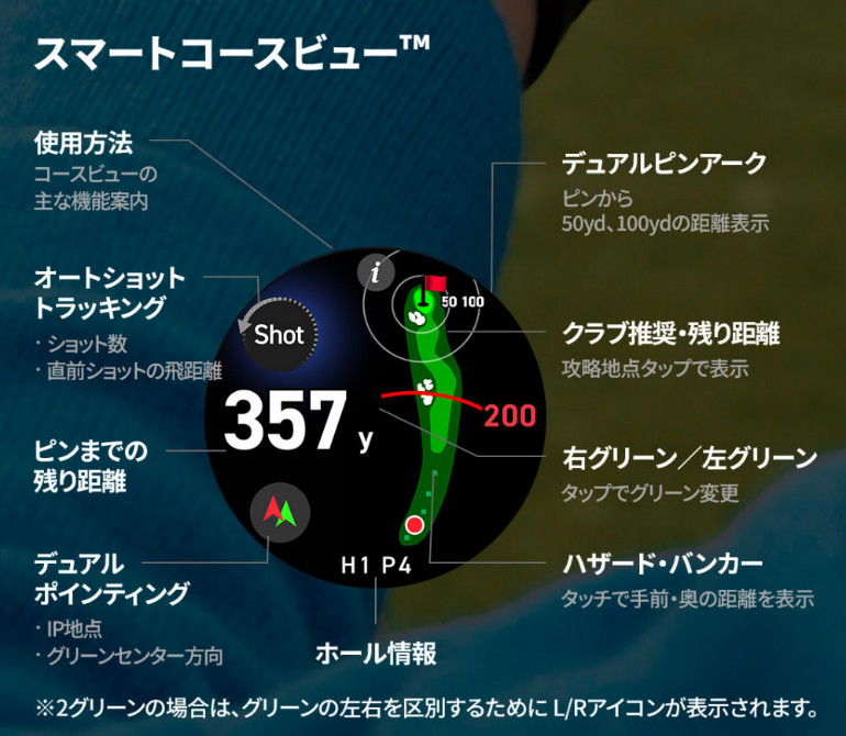 ※ティーインググラウンド以降はグリーンポインティングのみ起動します。(例外:Par5)