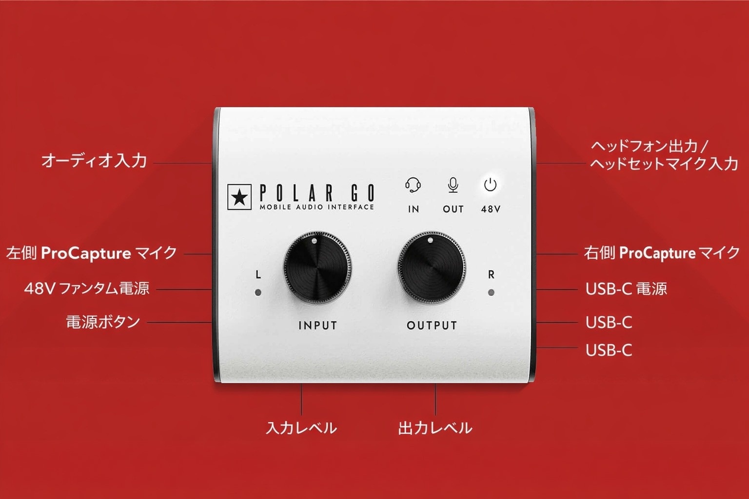 | その他詳細 1 | Blackstar POLAR GO 付属品:クイックスタートガイド(簡易マニュアル)、USB-C to USB-C ケーブル 内蔵マイクの数:2つのProCapture(TM)マイク マイクプリアンプの数:1 ファントムパワー:48V ライン入力:1 ヘッドセット入力:1 ヘッドフォン出力:1 ループバック:あり 接続性:USB Type-C ※付属のUSB-CケーブルでPolar Goとモバイルデバイスを接続してください。 Lightning端子にはUSB On The GO(USB OTG)に対応した変換アダプタもしくは変換ケーブル(別売り)にしか対応しておりません。 プロトコル:USB 2.0 フォームファクター モバイル:4x4(ループバック入力を含む) |