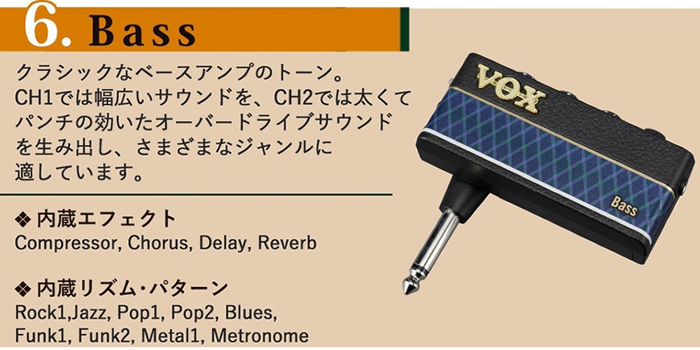 VOX (ヴォックス) ヘッドホンアンプ amPlug3 BASS&ヘッドホン&マイクロファイバークロス&単4電池セット