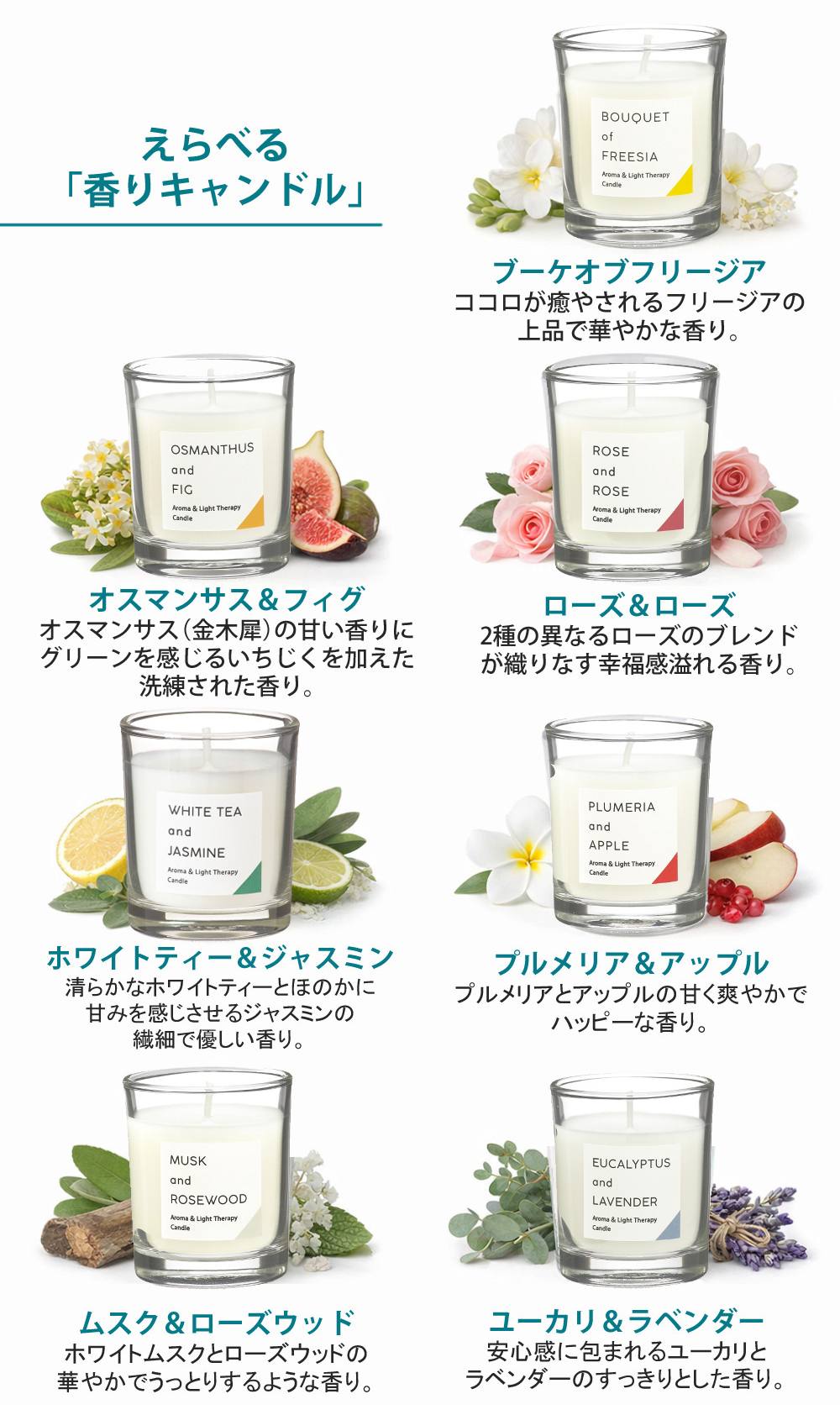 お好みの香りとカラーを組み合わせて、あなただけの特別なリラックスタイムを。