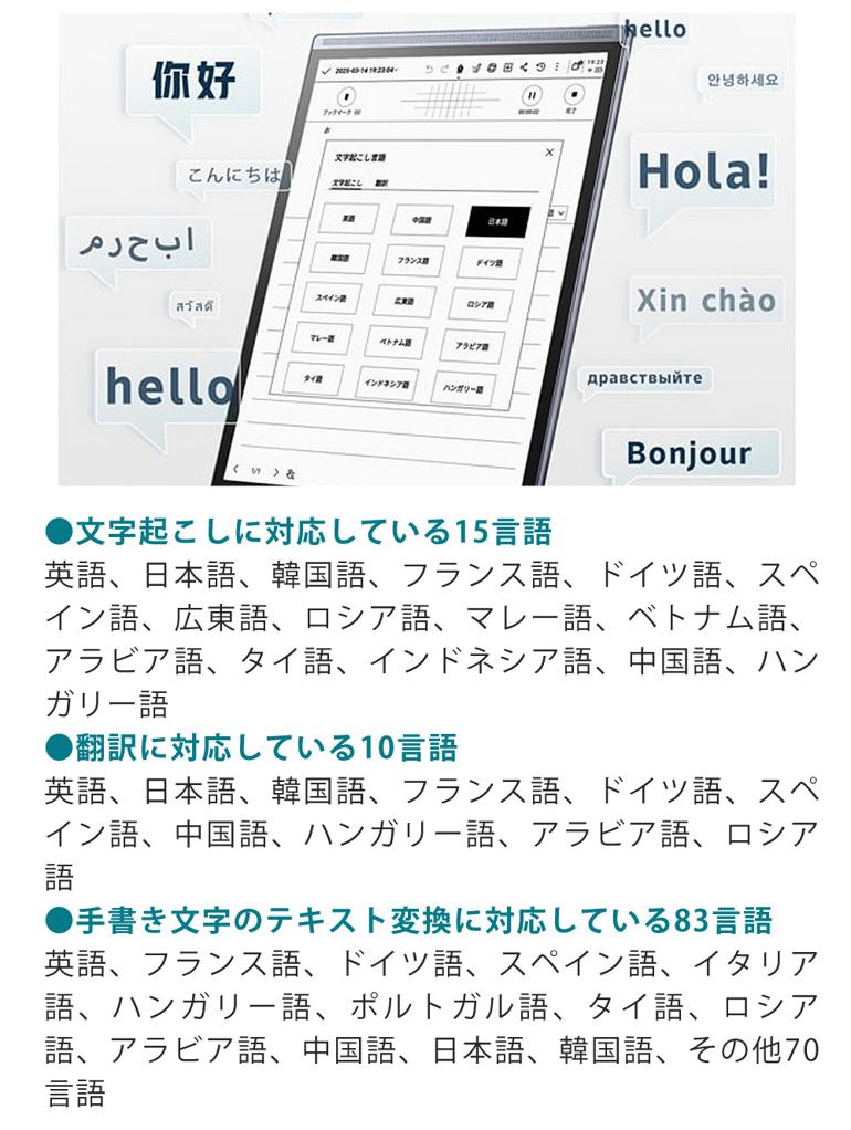 さらに、10言語対応の双方向翻訳を無料でサポートし、国際会議や語学学習もスムーズに行えます。