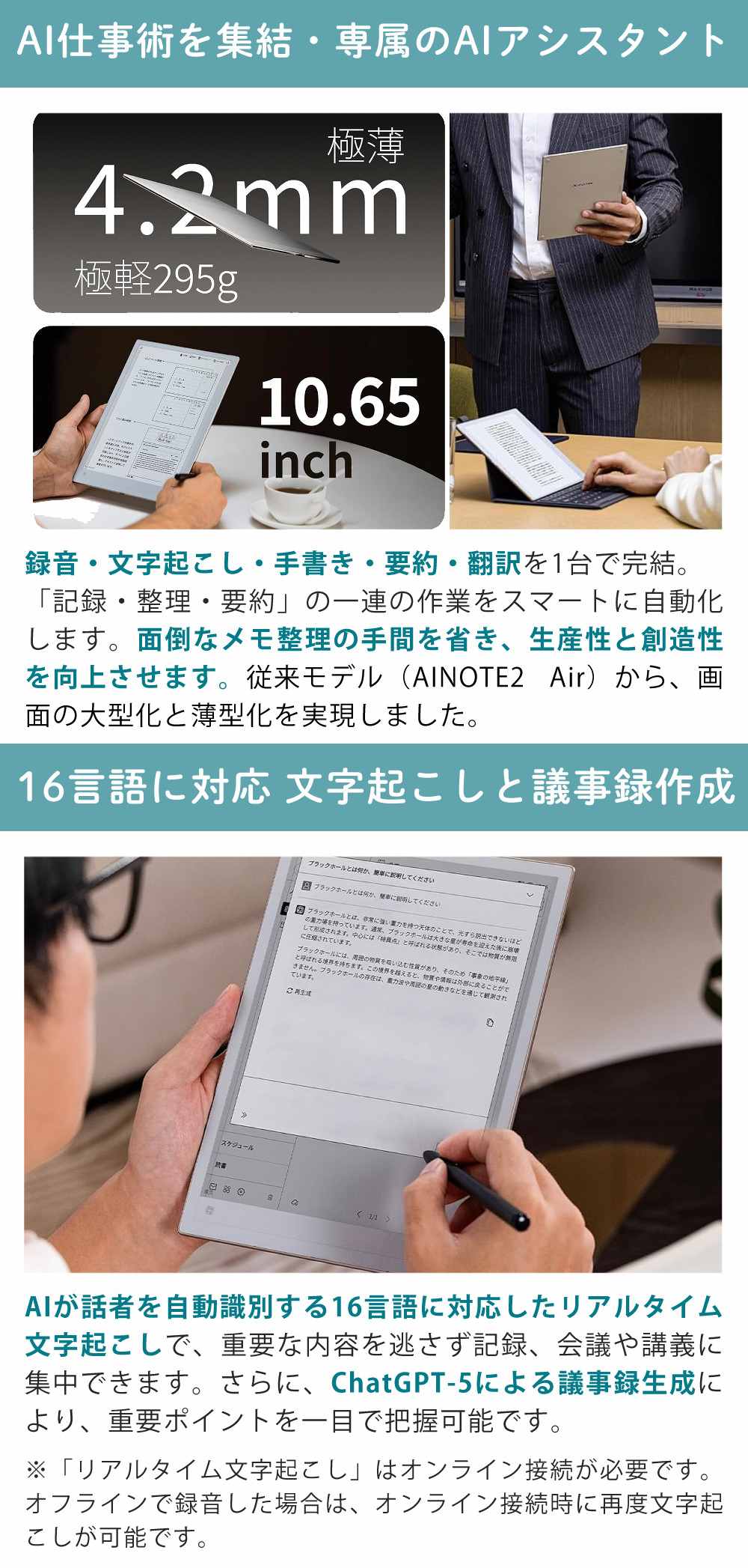 わずか4.2mm・295gの超薄型設計で、ビジネスでも学習でもスマートに使えるAIスマートノートです。