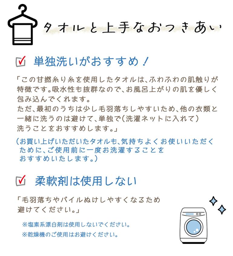 パイルがお互いに支えあい立ち上がることによって、洗濯を重ねるほどに空気を含み、ふっくら感が増します。