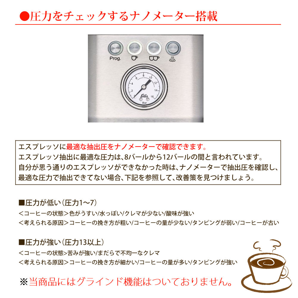 自分が思う通りのエスプレッソができなかった時は、ナノメーターで抽出圧を確認し、改善策を見つけましょう。