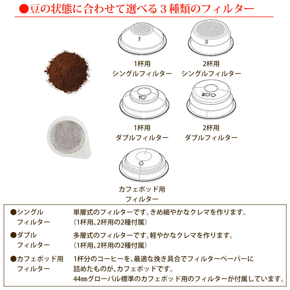 44mmグローバル標準のカフェポッド用のフィルターが付属しています。