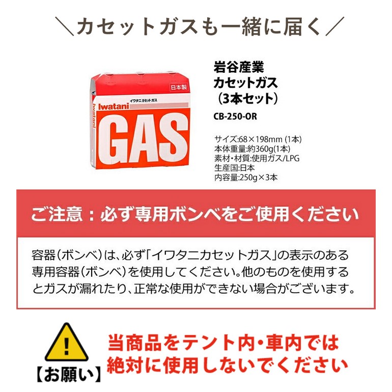 - 本体+油引き+ピック(2本)+舟皿+カセットガス(3本)