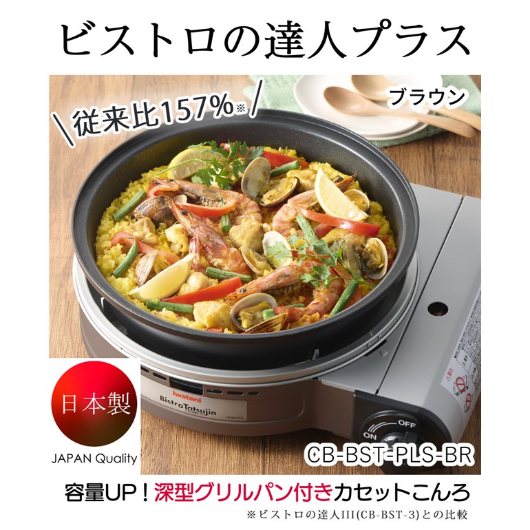 イワタニ カセットフー ビストロの達人プラス CB-BST-PLS-BR ブラウン&イワタニ純正プレート4種&カセットガス付き セット