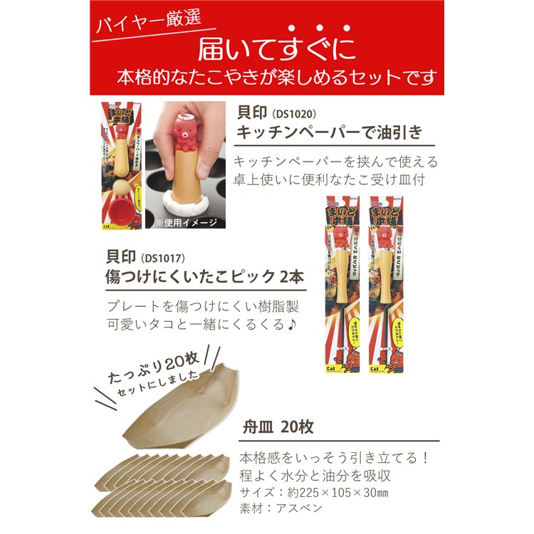 タコのキャラクターが目を引く 貝印 のたこ焼きグッズもセットになっています