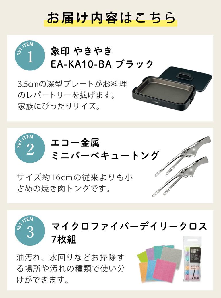 象印マホービン ホットプレート 1枚プレート やきやき EA-KA10-BA ブラック トング クロス セット