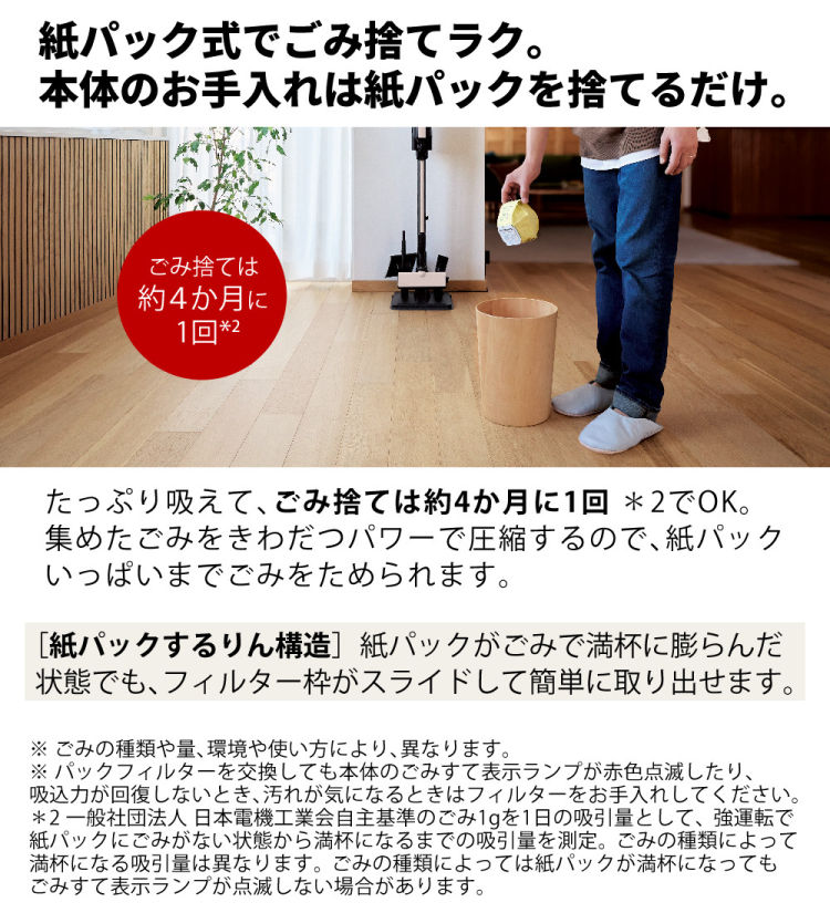 | その他詳細 3 | 【使いやすさ】 紙パックするりん構造/パワー長もち流路/ARおそうじ |