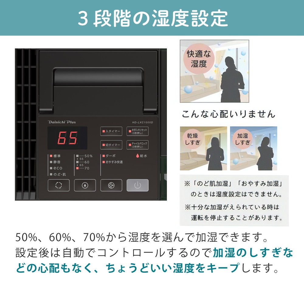湿度設定:50%/55%/60%/65%/70%
