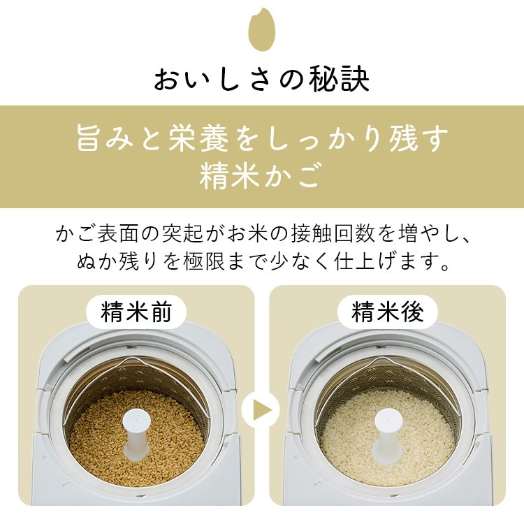 酸化した白米の表面を磨き、白さとおいしさをよみがえらせます。