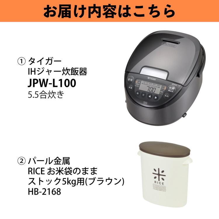 タイガー魔法瓶 IHジャー炊飯器 5.5合炊き 炊きたて ダークグレー JPW-L100HD & パール金属 RICE お米袋のままストック5kg用(ブラウン) HB-2168