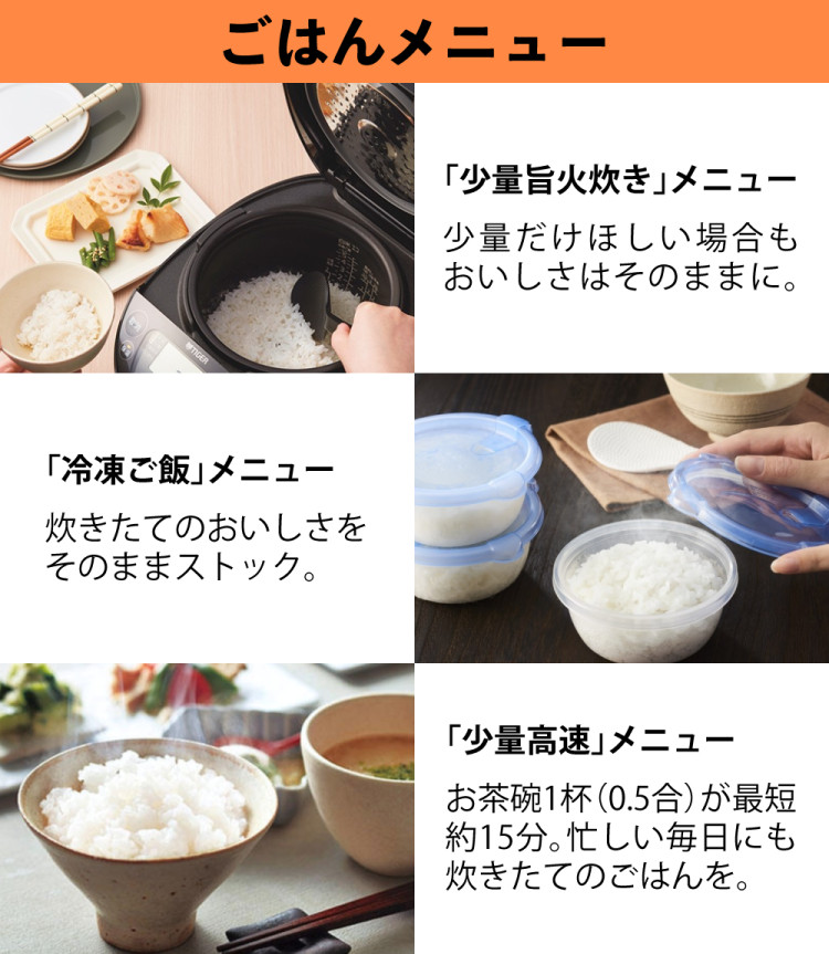 | その他詳細 3 | ※ 最大炊飯容量区分:電磁誘導加熱方式(IH)…B:0.99L以上 1.44L未満。D:1.80L以上。 ※ 年間消費電力:省エネ法・特定機器「電気ジャー炊飯器」の測定方法による数値です。(区分名も同法に基づきます。) ※ 1回当たりの炊飯時消費電力量とは省エネ法・特定機器「電気ジャー炊飯器」の測定方法による数値です。(区分名も同法に基づきます。) ※ 1回当たりの炊飯時消費電力量は「エコ炊き」メニュー、1時間当たりの保温時消費電力量は「エコ炊き」メニュー時の電力量です。(出荷時の設定)消費電力量は炊飯量やご使用のメニューによって異なります。 ※詳しくはメーカー公式サイトをご確認ください。 |