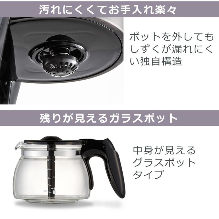 | その他詳細 1 | 電源:AC100V 消費電力:600W 保温機能:加熱式保温機能 水槽タンク:着脱不可 使用フィルターペーパー:メリタ フィルターペーパー1×2 付属品:メジャースプーン、保証書 メーカー保証:1年間 |