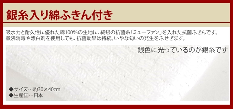 | その他詳細 5 | 5.ビストロ先生 銀糸の抗菌の物語 綿ドビー織りふきん K58000 サイズ約30×40cm |
