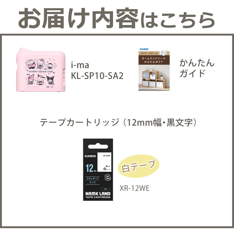 カシオ ネームランド イーマ (i-ma) KL-SP10-SA2 サンリオ & テープ1本(白) XR-12WE &かんたんガイド (3点セット)