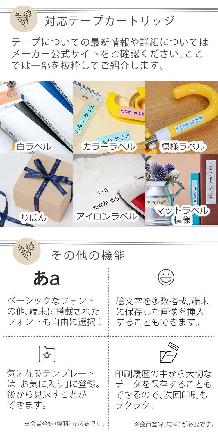| その他詳細 6 | 同梱品:取扱説明書(保証書付)※各種電源・テープカートリッジは付属しません |