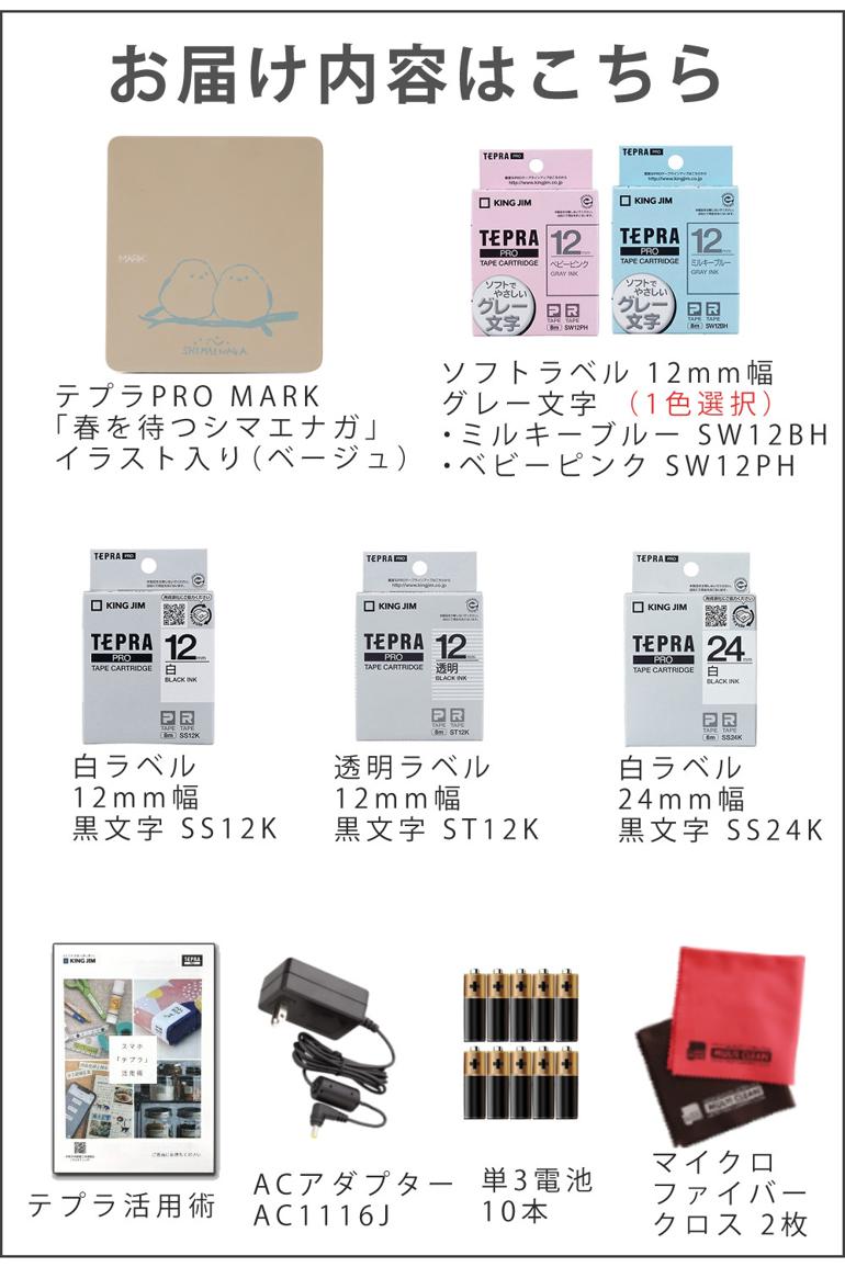 ![キングジム テプラPRO MARK シマエナガデザイン SR-MK1-BE ベージュ & テープ4本[SS12K ST12K SS24K SW12PHベビーピンク] &ACアダプター&テプラ活用術&クロス&単3電池10本 (9点セット)](http://d3mijdhf1k8u77.cloudfront.net/img/goods/7/AA0222-S5603KIN5543-P.jpg?120034)
