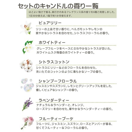 | その他詳細 1 | カラー:アイボリー/コーラルピンク/ブルーグレー/パープルグレー 本体サイズ: 高さ11.5cm、直径10.5cm 燃焼時間: 約4時間 香り: ピュアリリー (リリーの上品で甘い香りに、ベルガモットやレモンの爽やかなシトラスを合わせた、シトラスフローラルの香り。) 同梱物: ホルダー1個/フレグランスカップキャンドル(ピュアリリー)4個入り1箱 |