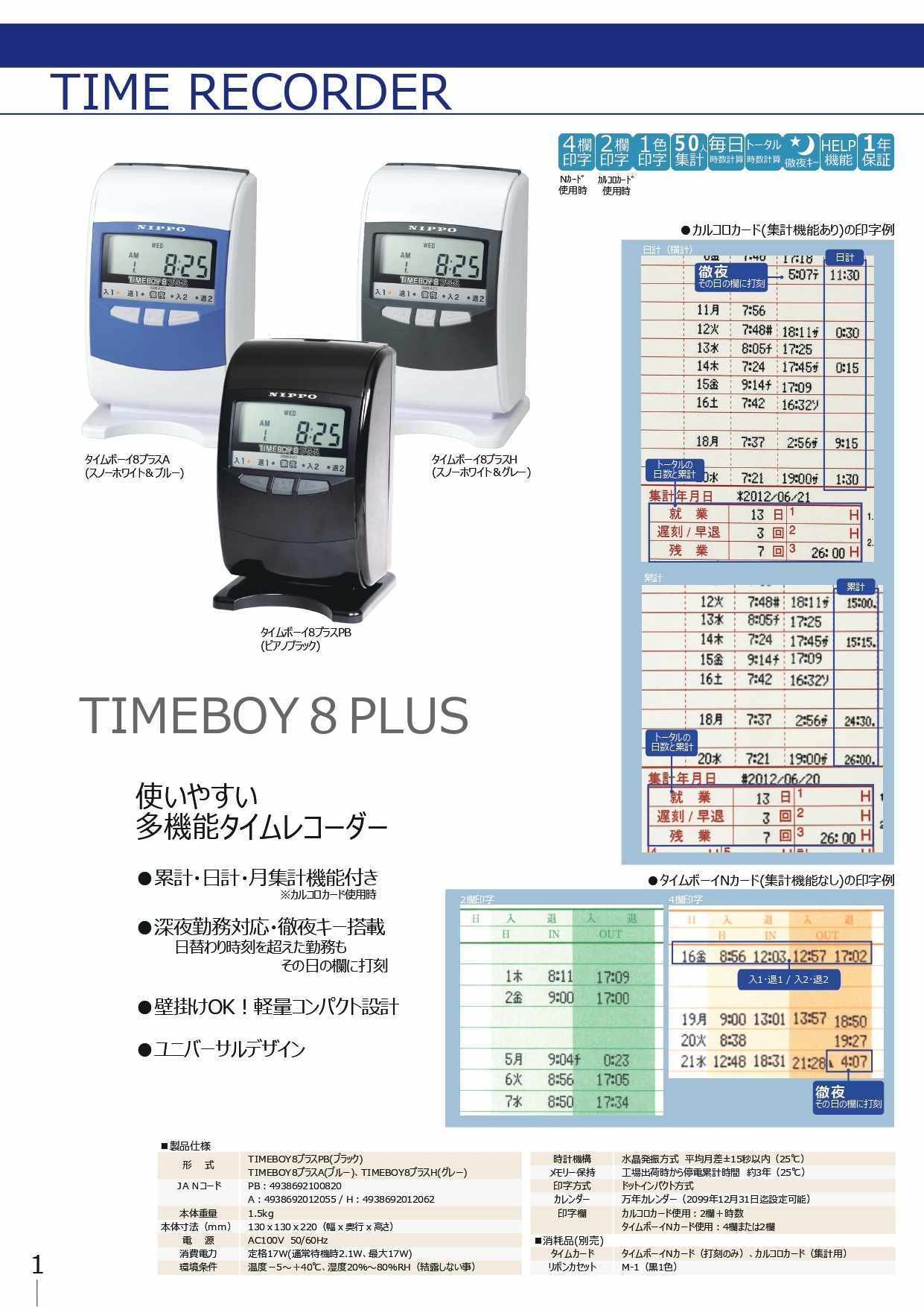 ニッポー タイムレコーダー タイムボーイ8プラス Nカード クロス セット