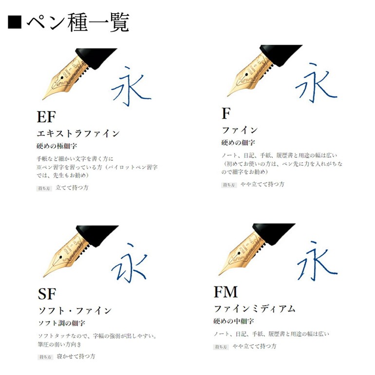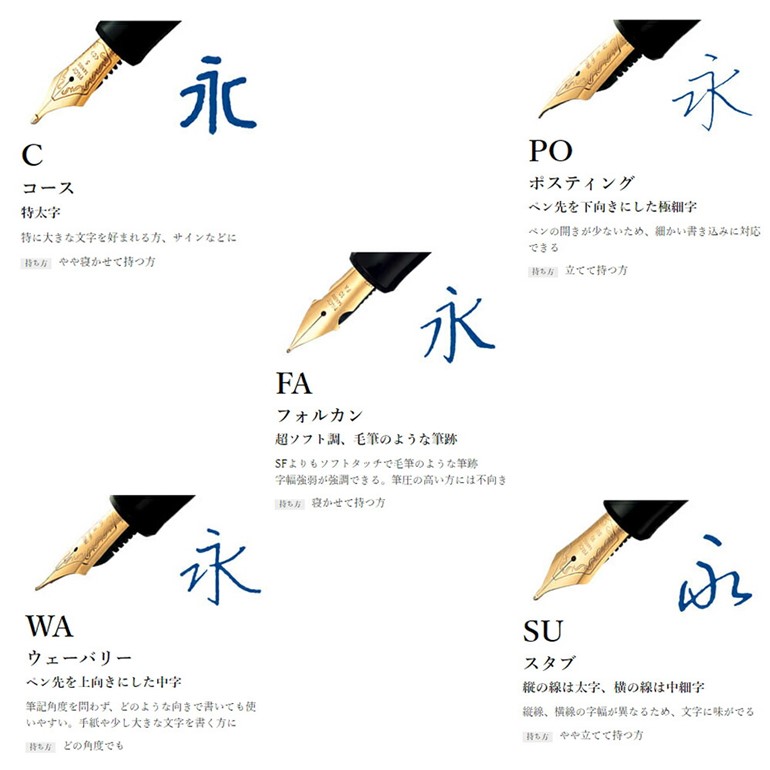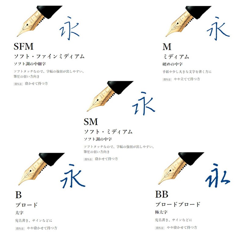 ペン先種類はSF:ソフト・ファイン(ソフト調の細字)でお届け