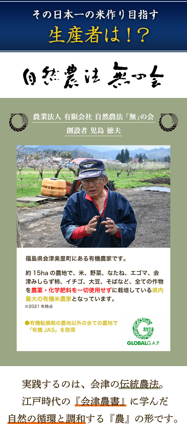 〈生産者指定米〉〈自然農法 無の会〉〈農薬及び化学肥料不使用〉