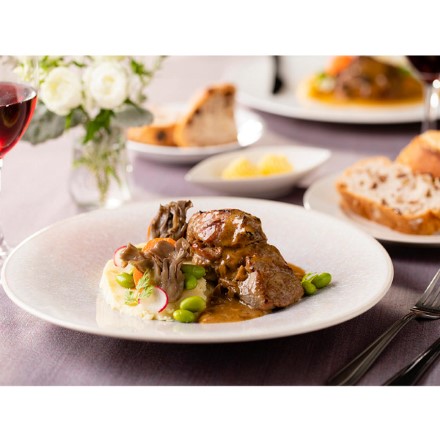 | 内容量 | ビーフチーク260g、ガーリックマッシュポテト300g、添え野菜120g、ポルチーニマッシュルームソース80g |