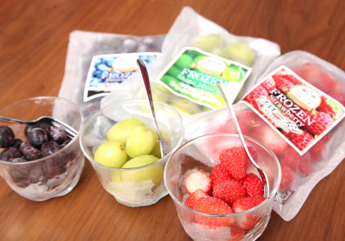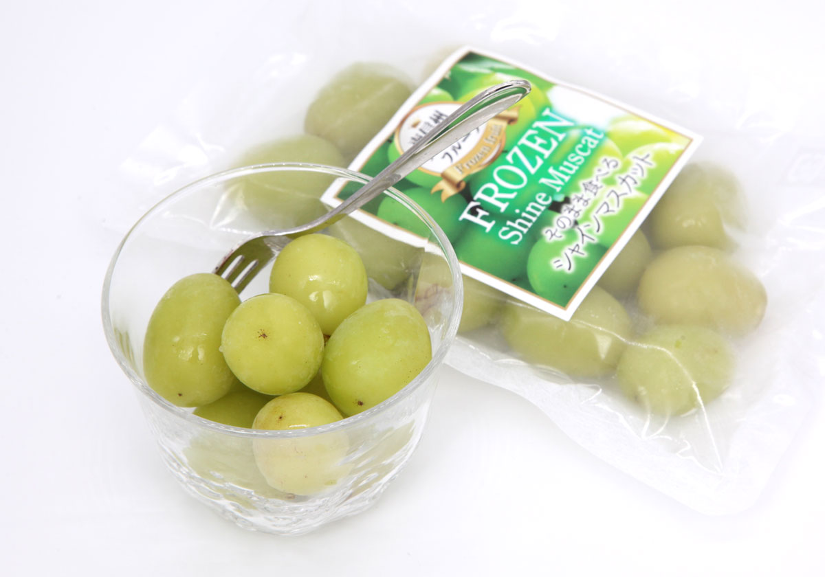 そこで2年もの歳月をかけ、ようやくたどり着いたのが独自の冷凍&保管方法。美しいグリーンの見た目と、シャーベットのような食感が楽しめるフローズンシャインマスカットが誕生しました。