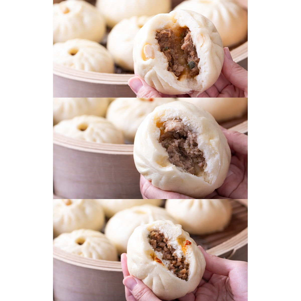 <招福八丁肉まん>ピリッと豆板醤を効かせた八丁味噌の風味が香る豚まん。八丁味噌のうま味とコクが知多三元豚と絡み合った肉餡をお楽しみください。